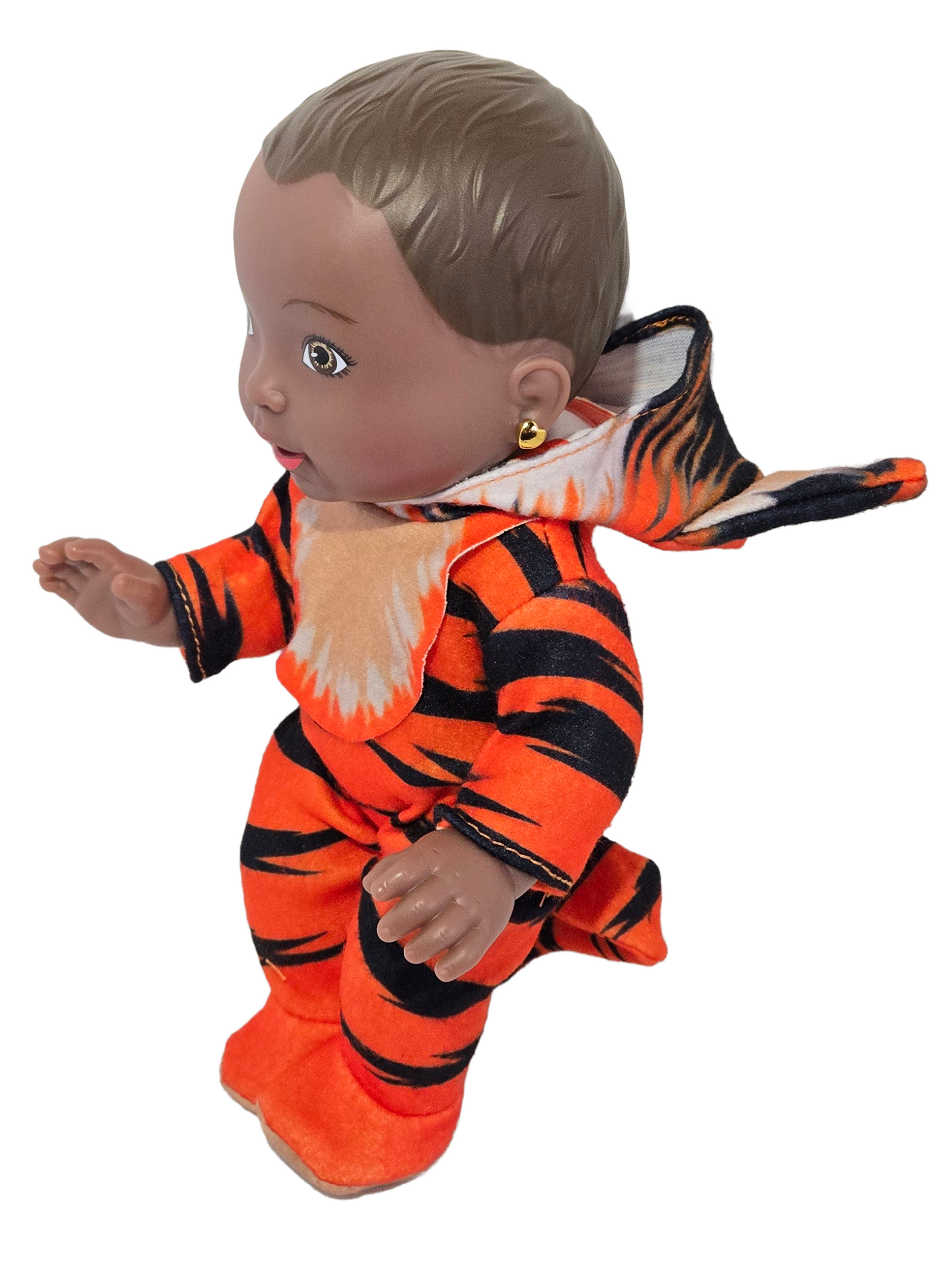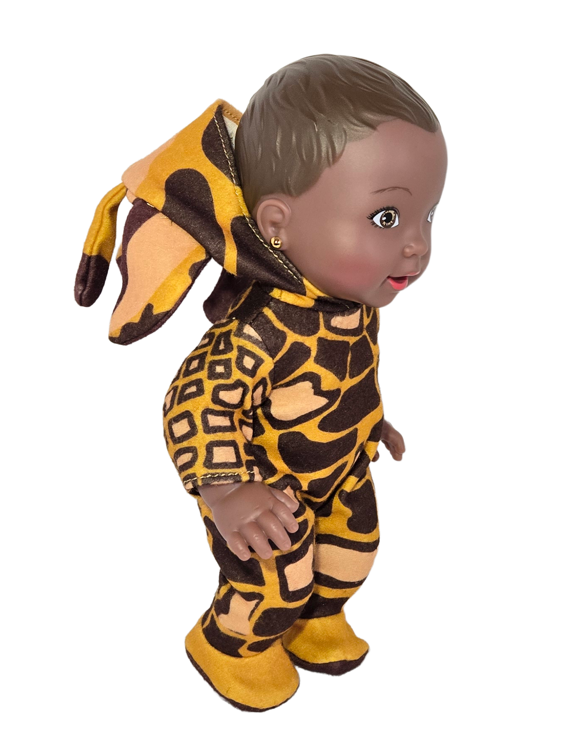 The Keyara brand brings you the Baby Keyara Safari Zoo Collection. Featuring a beautiful basic 12” baby doll in traditional ethnic skin tone. This adorable doll is poseable and available in 4 Safari Zoo themes with removable hats. Choose your favorite style of Tiger, Giraffe, Zebra or Lion and take your baby on a wild adventure!